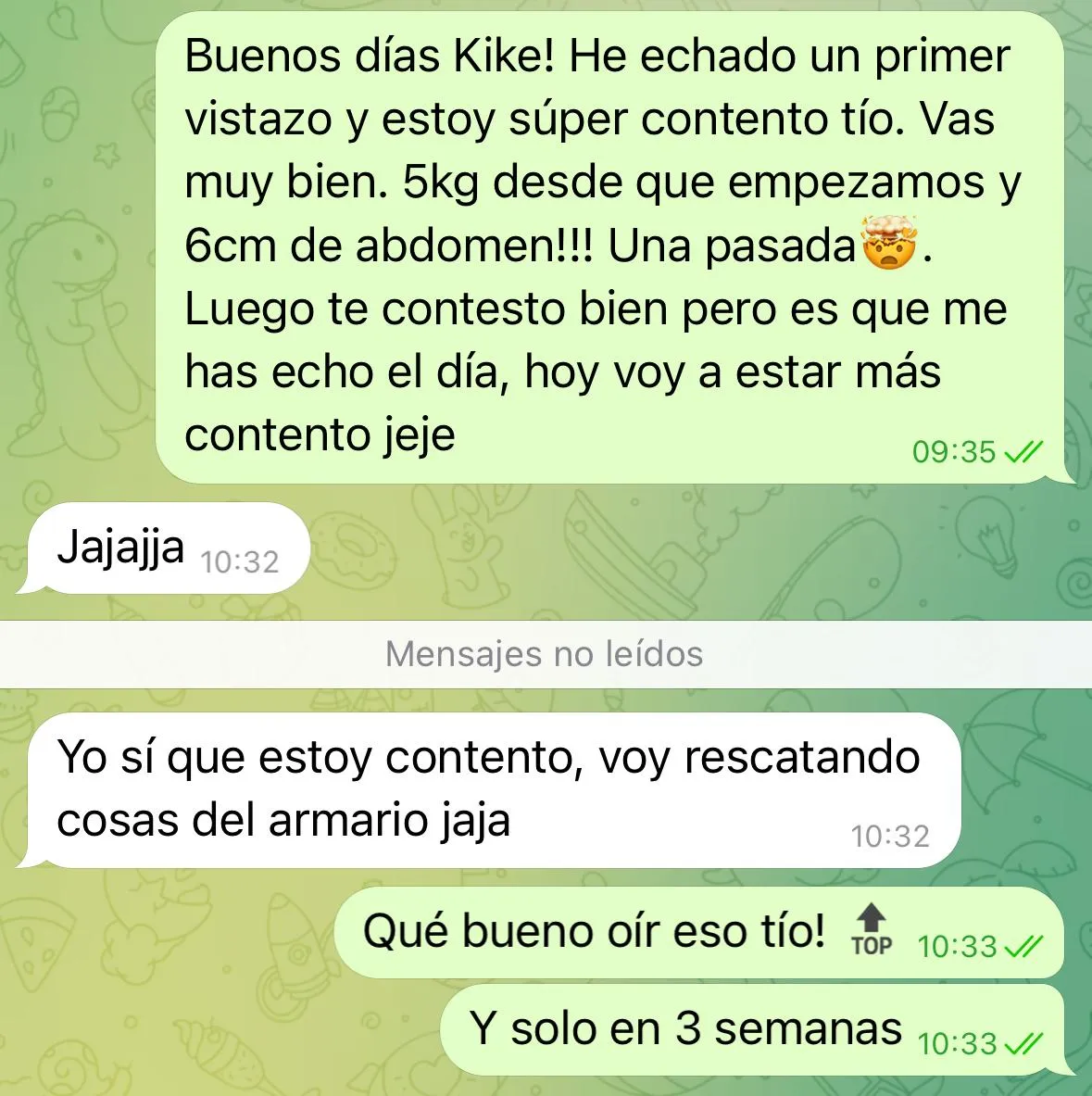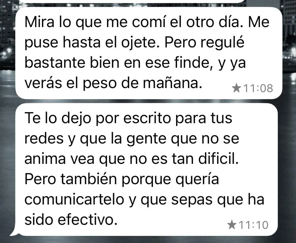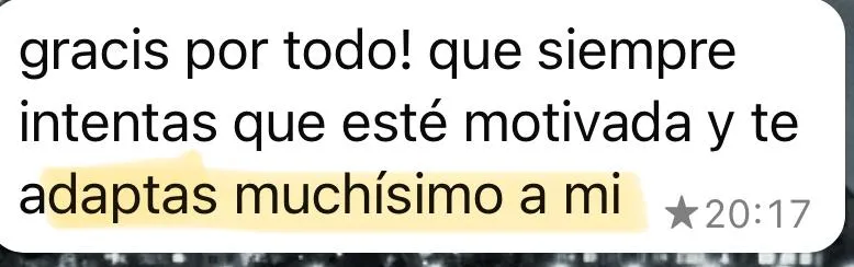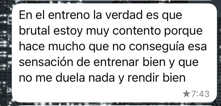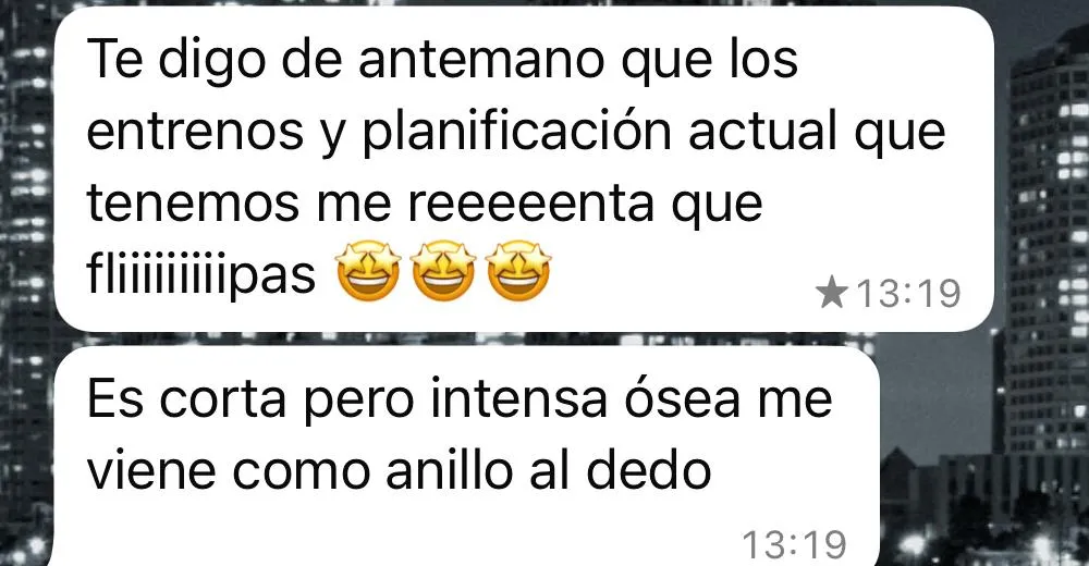 No es un PDF que te descargas y adiós. Tienes acceso directo a mi un chat personal para dudas diarias, revisiones semanales y tantos cambios en el programa como sean necesarios